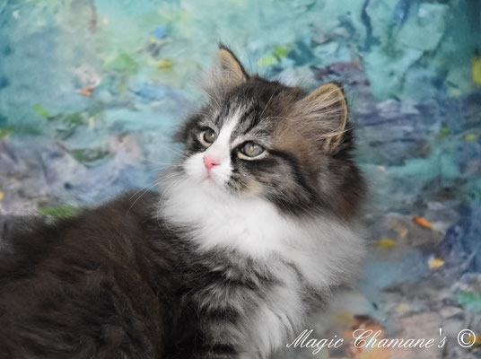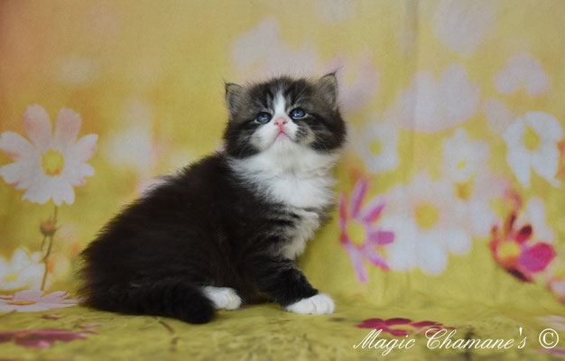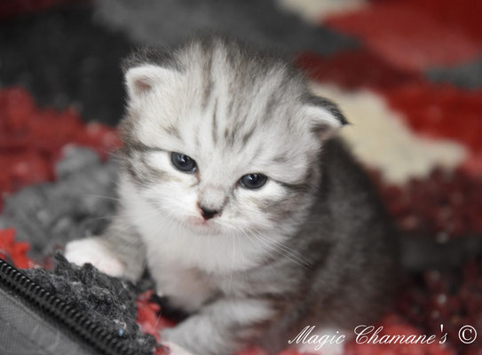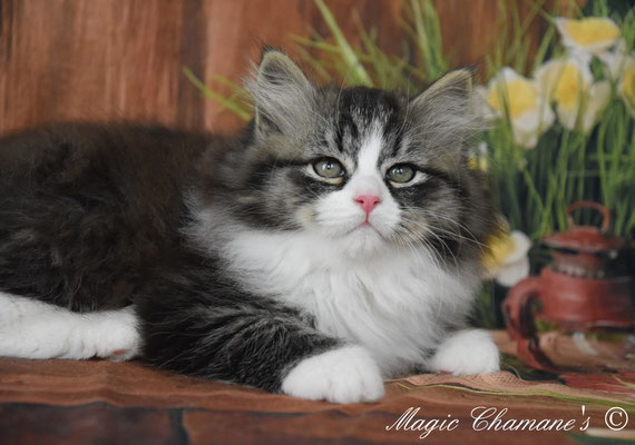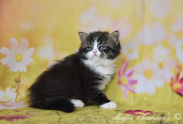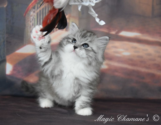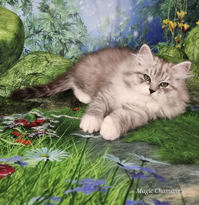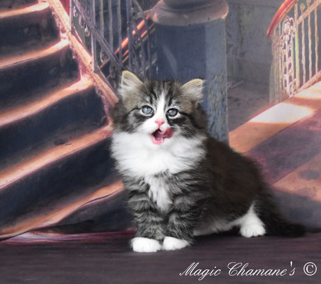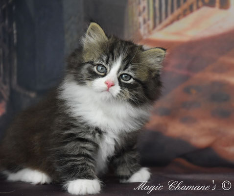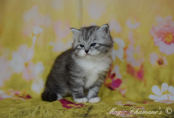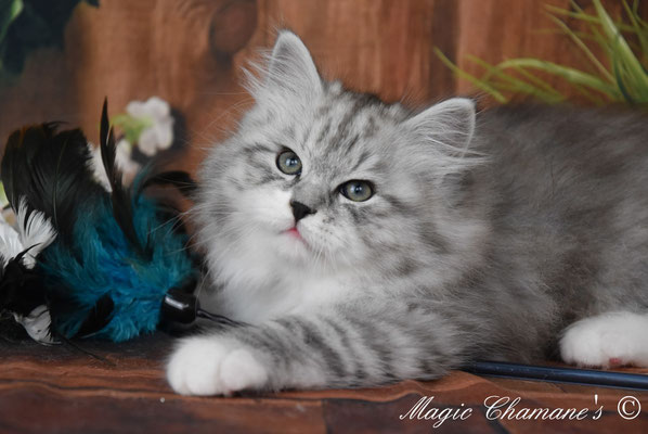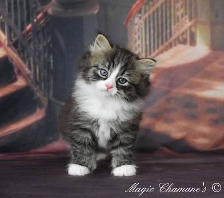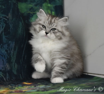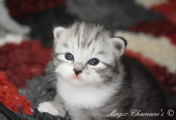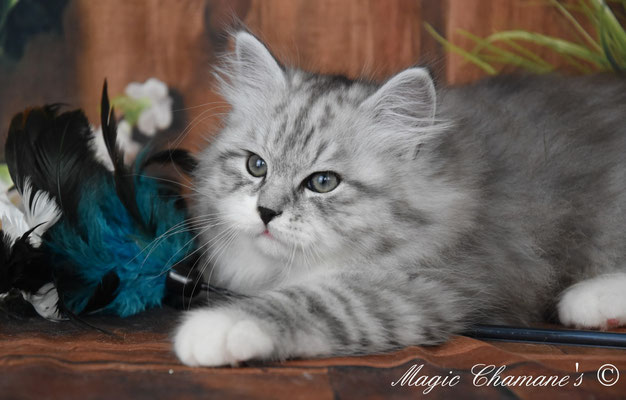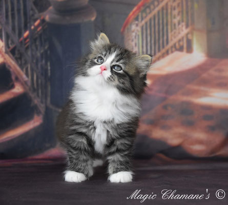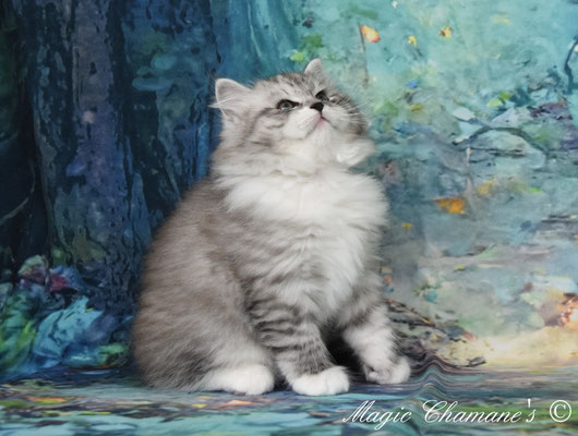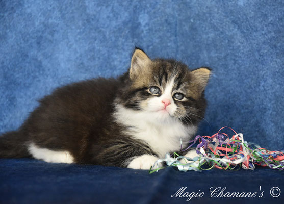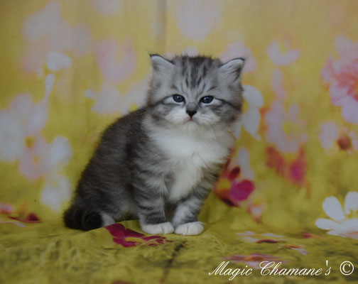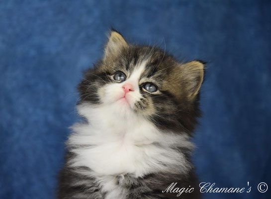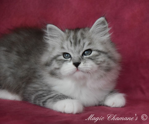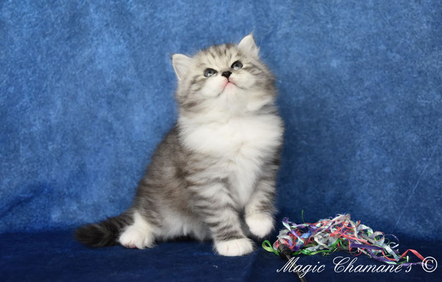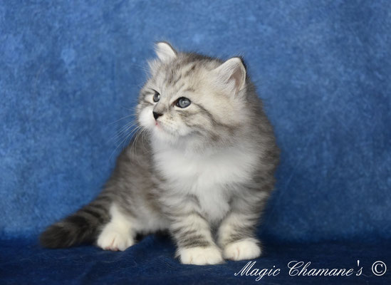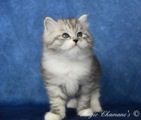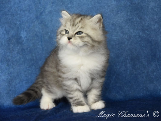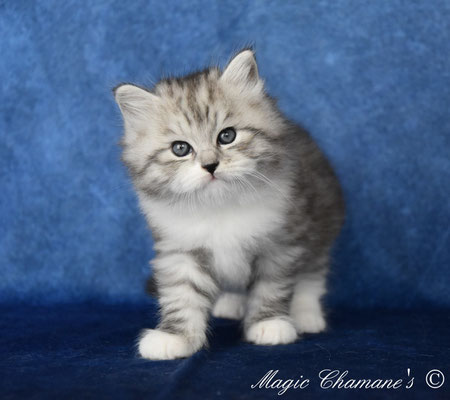 Ampère : Mâle Blue silver mackerel tabby et blanc bicolore